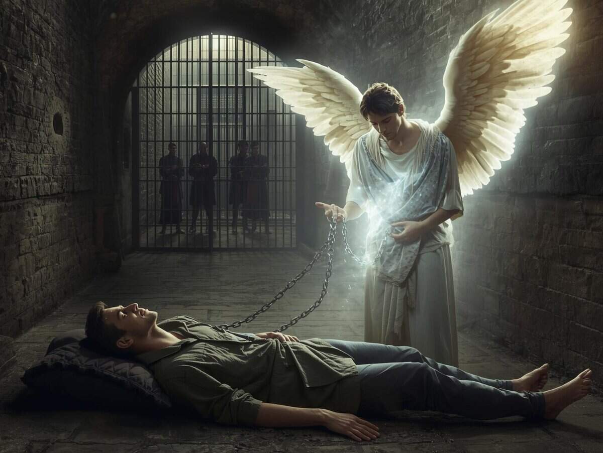 Guards watched him closely, and it seemed impossible for him to escape. During the night, an angel suddenly appeared in the prison cell.