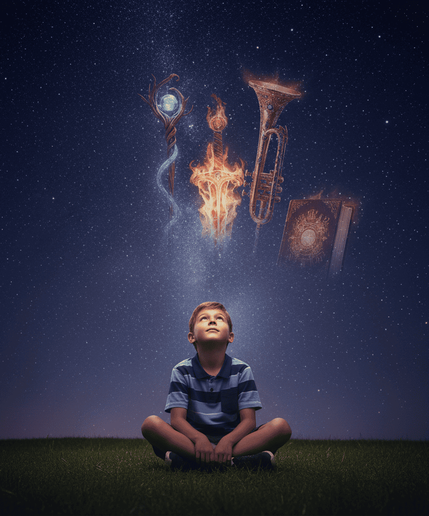 A sword made of fire is dramatic and bold. A staff that heals wounds gives hope. A trumpet that reshapes worlds is thrilling.