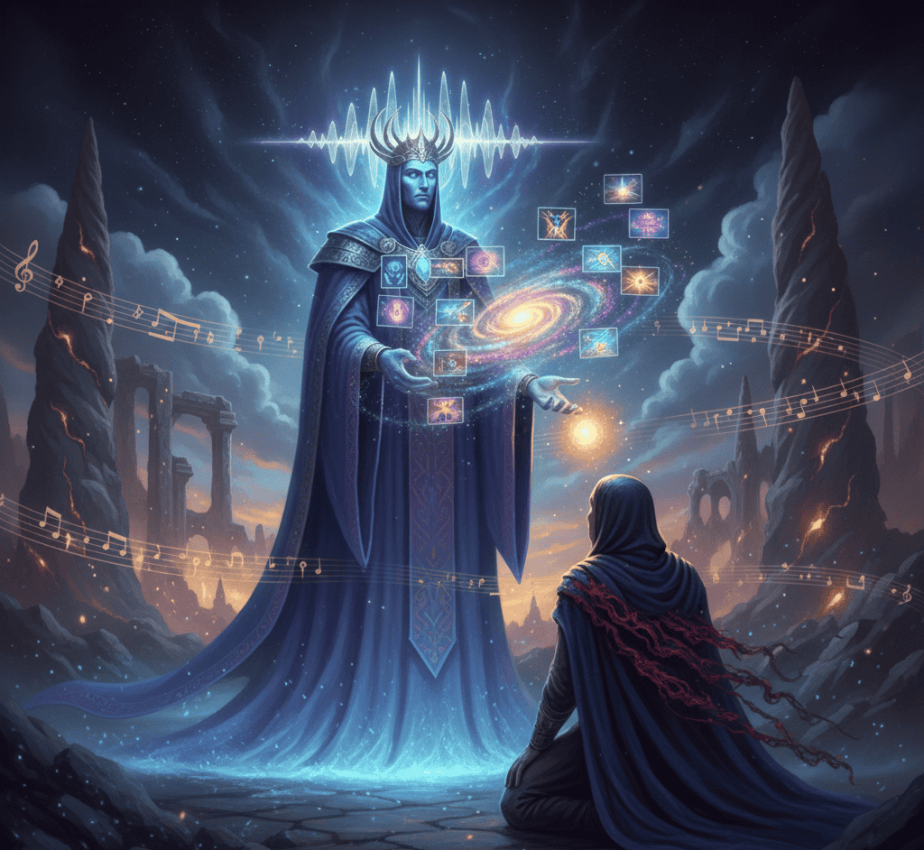 He is a king who speaks through silence and guides through music that only spirits hear.