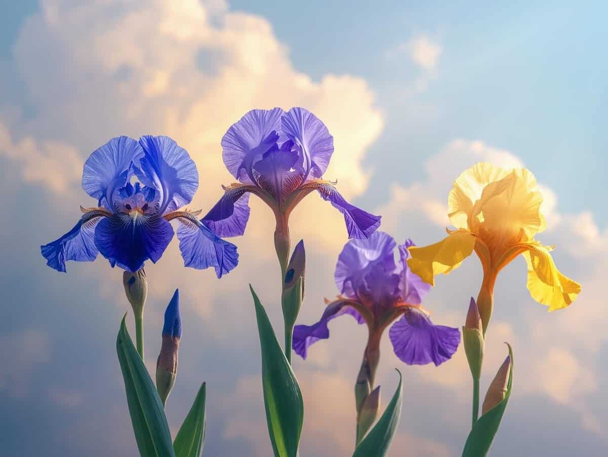 In some traditions, irises were planted on graves to help guide souls. Their unique shape and bright colors make them stand out, adding to their special meaning.