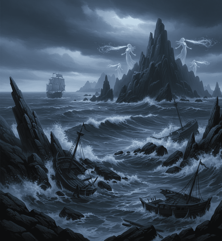 Their voices promised knowledge and beauty, but the cost was death on the sharp rocks that surrounded the shore.