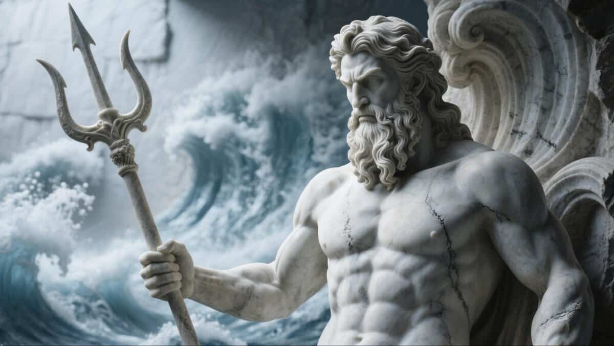Poseidon, the mighty god of the sea, earthquakes, and horses, is often depicted with his trident and bad temper.
