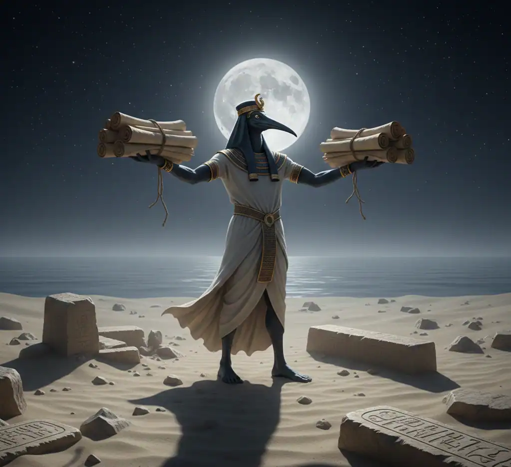 The night allowed Thoth to record events, study the stars, and reveal insights to those ready to receive them.