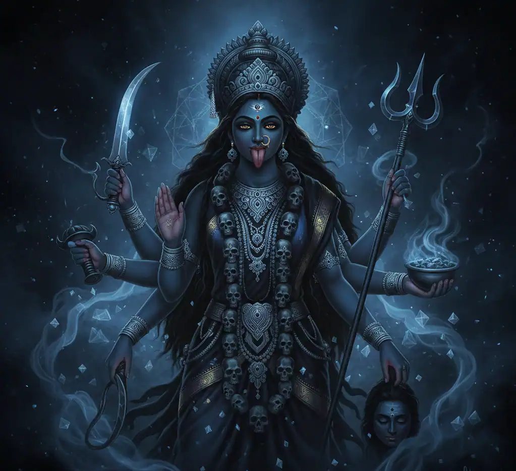 While her appearance can be frightening, she represents wisdom, truth, and liberation. Kali destroys illusions, false pride, and attachment to the ego.