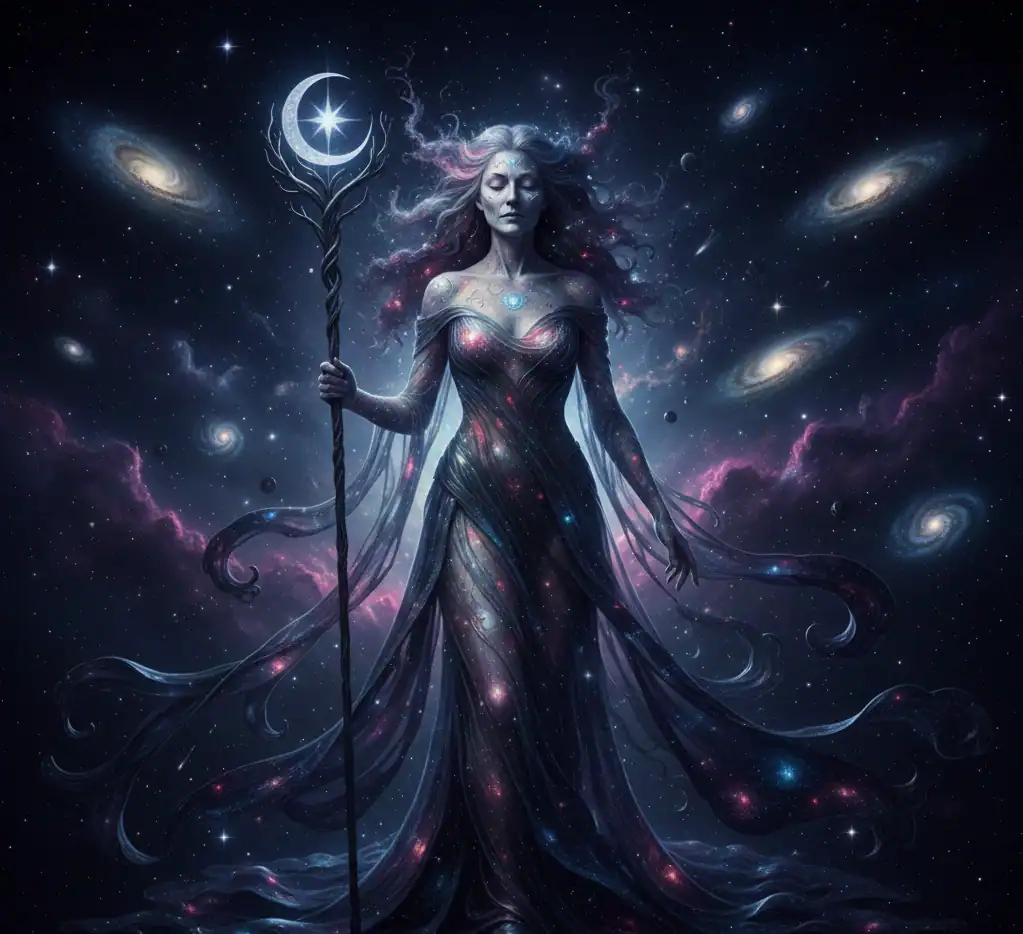 Nyx is the Greek goddess of night and darkness, feared even by other gods. She is associated with fate, dreams, and cosmic balance.