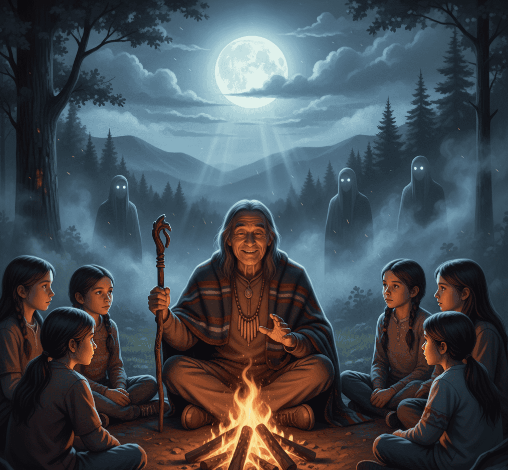 The Cherokee tell that these beings could not tolerate sunlight for long periods, making the night their primary time of activity.