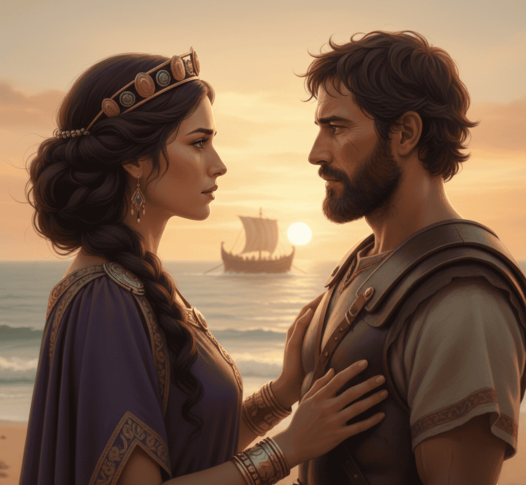 She had every reason to keep her heart locked away. Yet when a tired traveler named Aeneas arrived at her shores, something opened inside her.