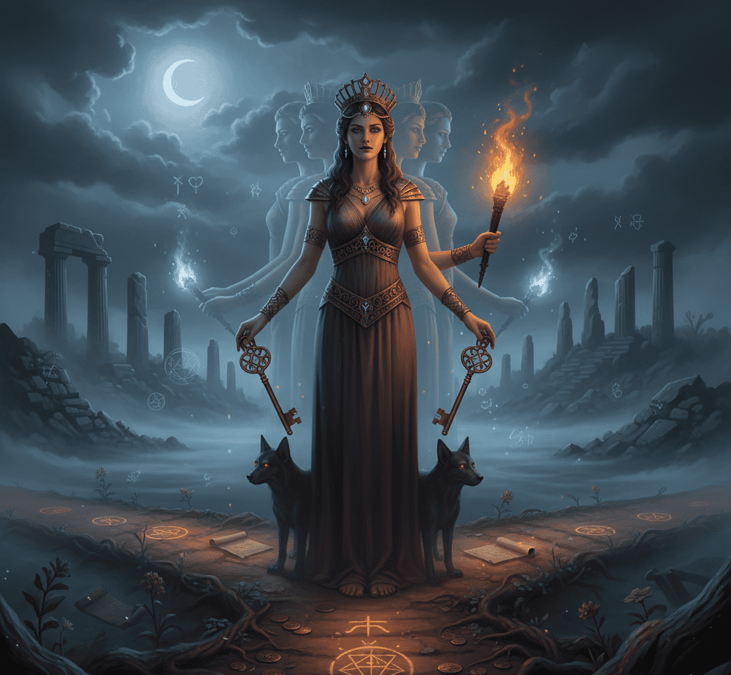 Hecate is one of the most powerful and mysterious figures of the Underworld. She stands at the crossroads, guiding souls and travelers who are lost.