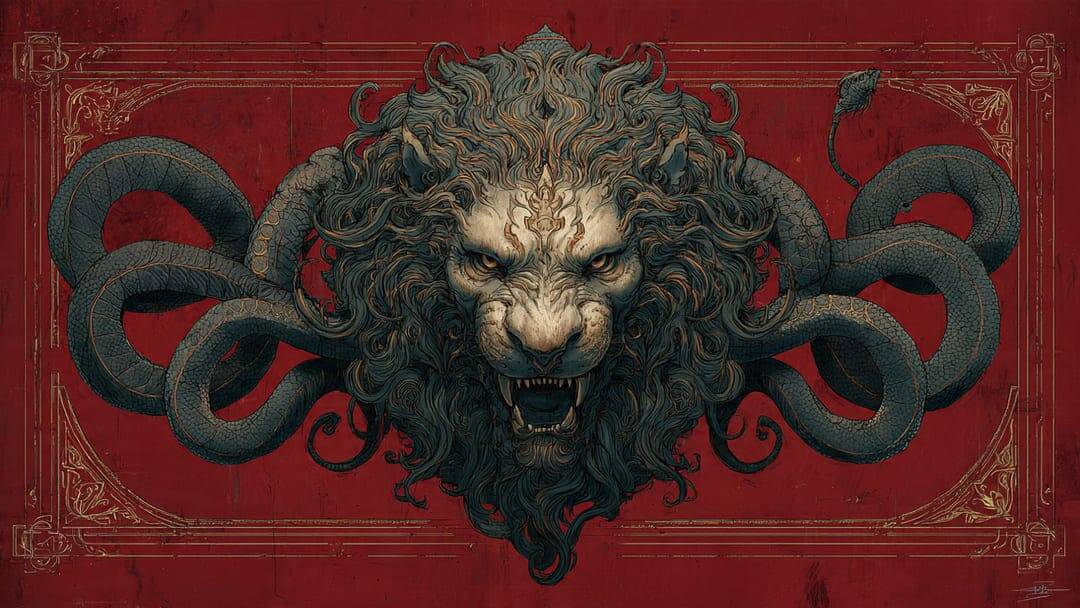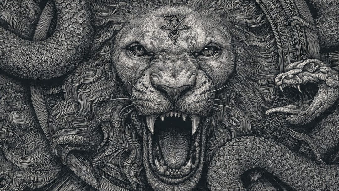 In gnostic art and texts, he’s depicted as a lion-faced serpent, an embodiment of hubris and ignorance.