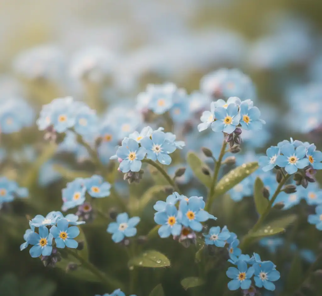 Forget-me-nots are small, delicate flowers symbolizing remembrance, love, and spiritual guardianship.