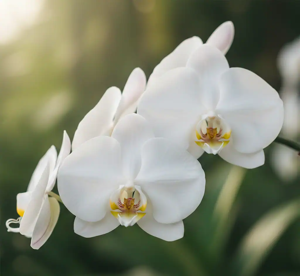 The white orchid is a symbol of purity, elegance, and spiritual protection. Its unique shape and gentle color are associated with angelic guardianship.
