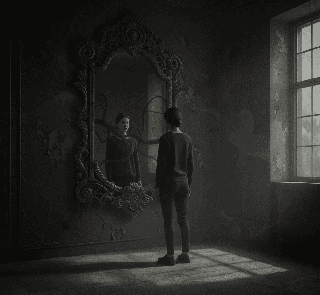 This created a slow and unsettling fear. They started to feel that someone else was watching from behind the surface. They felt their reflection was no longer fully their own.