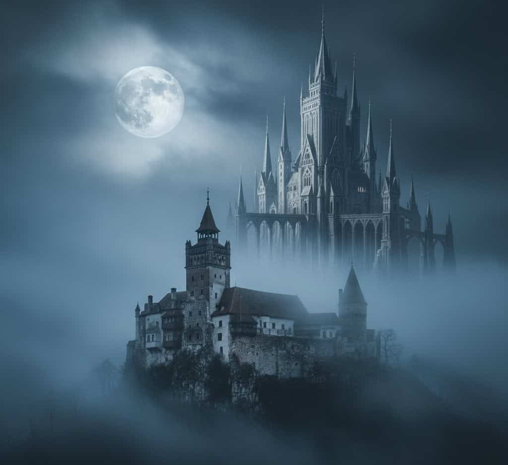 In Bram Stoker’s novel, Dracula’s castle looms over the Transylvanian landscape like a nightmare, perched on a rocky cliff and surrounded by wolves.