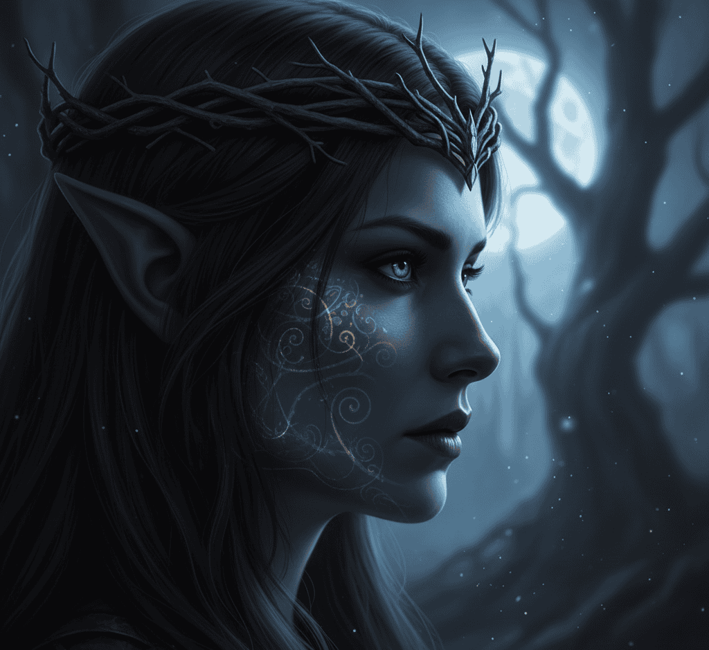 In the quietest hours of the night, when the world slows its breathing and the veil between realms thins, there is a queen who walks through moonlit forests collecting treasures no mortal can hold.