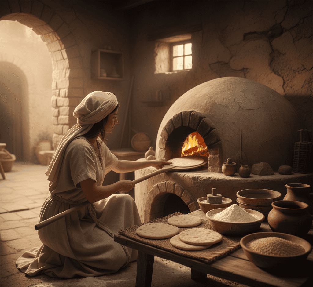 Bread was the most common and important food in biblical times. It was eaten daily and was often made fresh from wheat or barley flour.