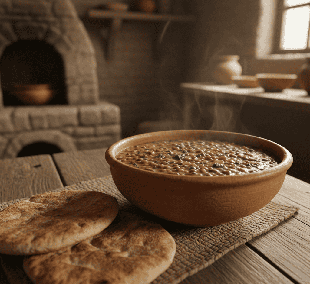 Lentils were a simple but filling food that provided important nutrients and energy. They were often cooked into stews and eaten with bread.