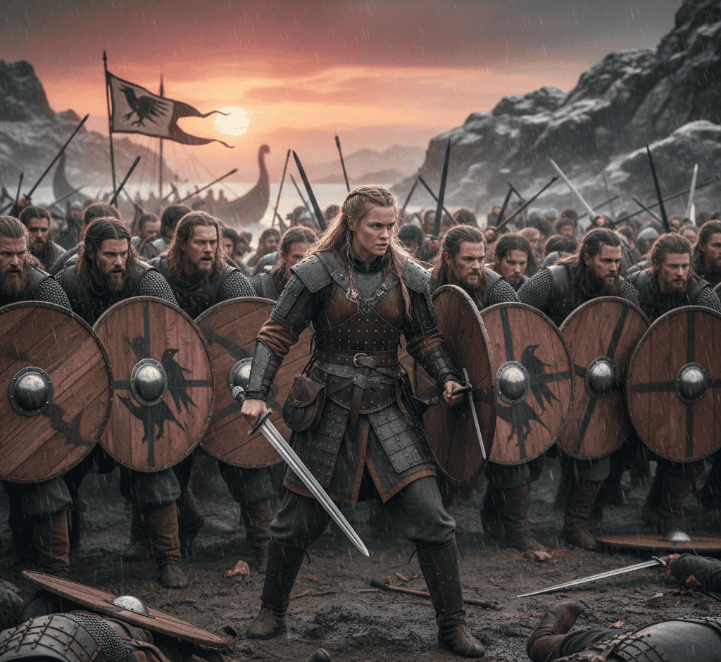 Lagertha was not only brave but also intelligent and strategic. One famous story tells how she used an unexpected tactic during a battle by leading an attack from the rear, catching the enemy off guard.