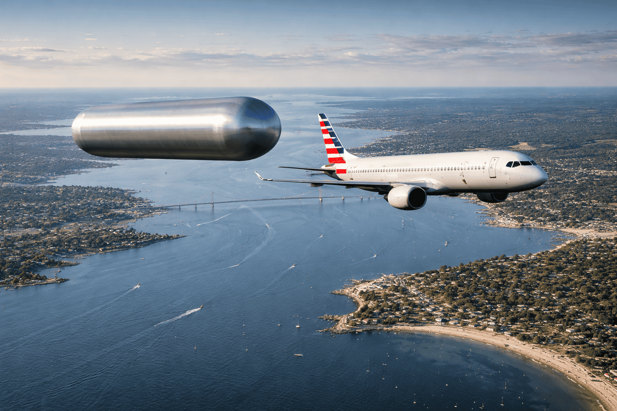 2. Silver Cylinder Next to a Plane Over Rhode Island