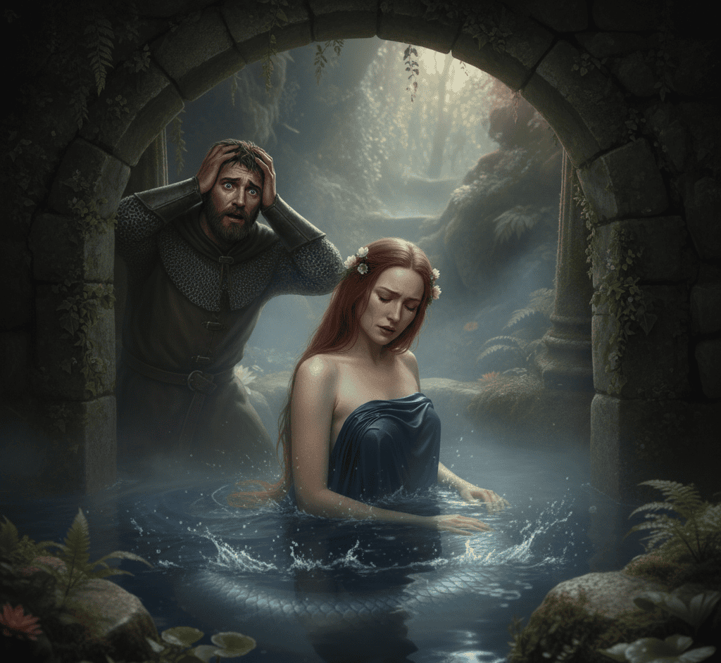 Inevitably, Raymondin broke his promise. Suspicion gnawed at him, and one Saturday he spied on Melusine in her bath.