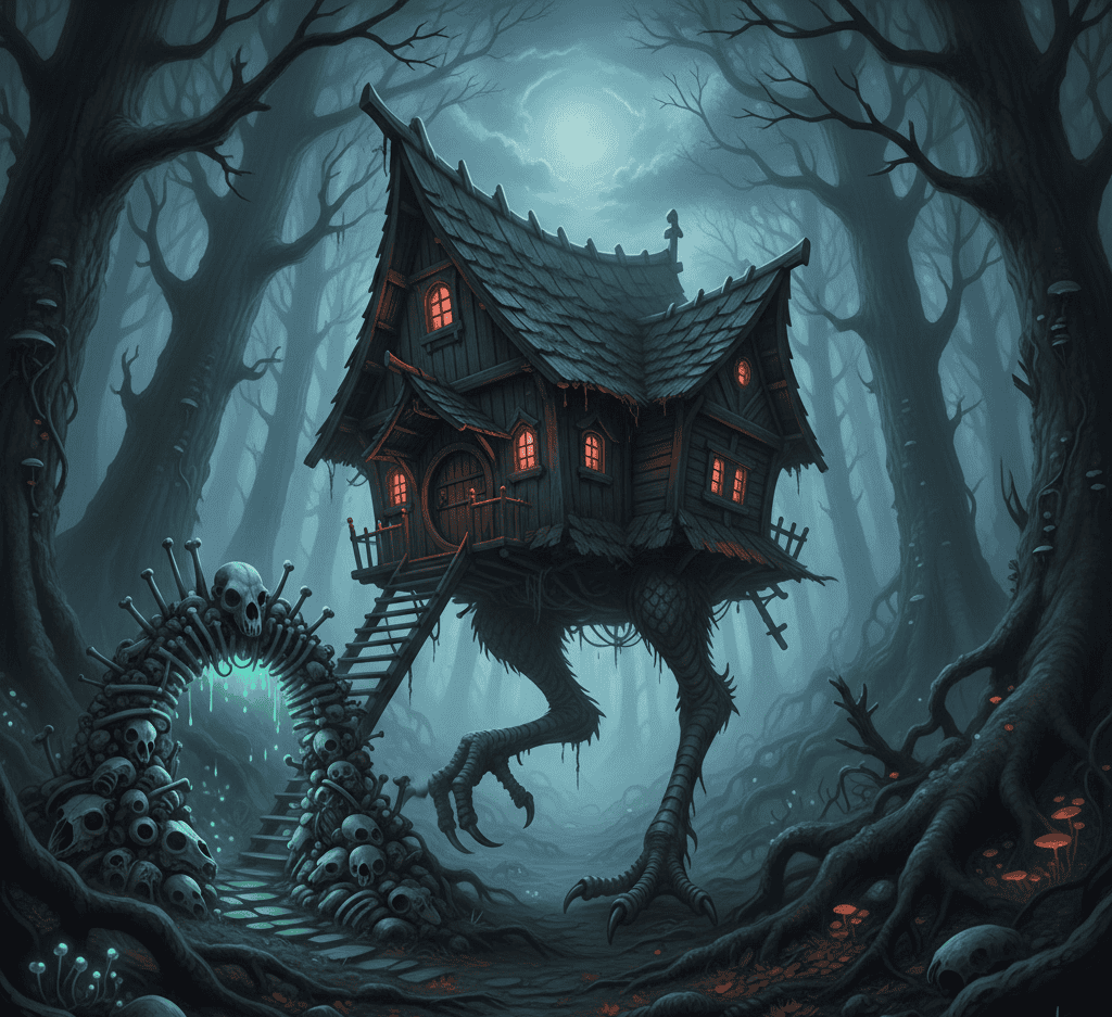 Some stories say the hut can smell fear. Others say it makes strange clucking noises at night. People never forget that detail once they hear it.