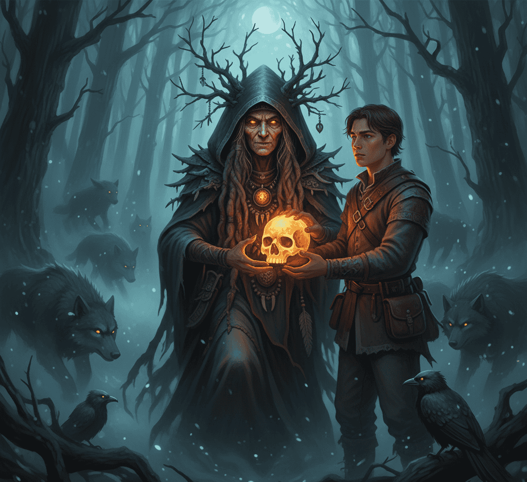 Many old stories show her giving magical tools or guidance to those she sees as worthy. Sometimes she gives a glowing skull that lights the way in the night.