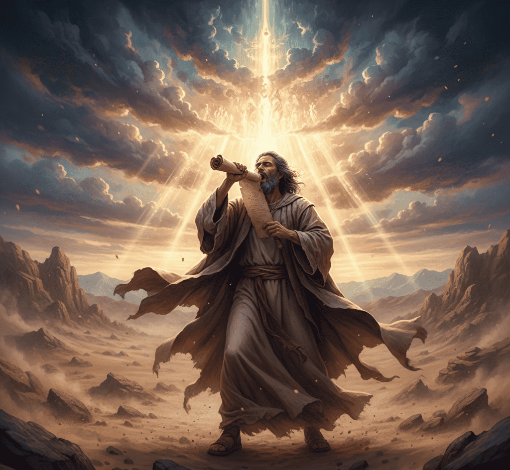 God instructed the prophet Ezekiel to eat a scroll containing words of lamentation and prophecy.