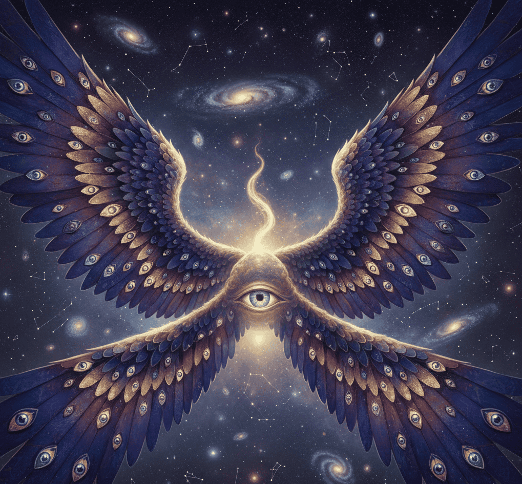 In some stories, Azrael is described as having a vast and complex form, with countless eyes and wings.