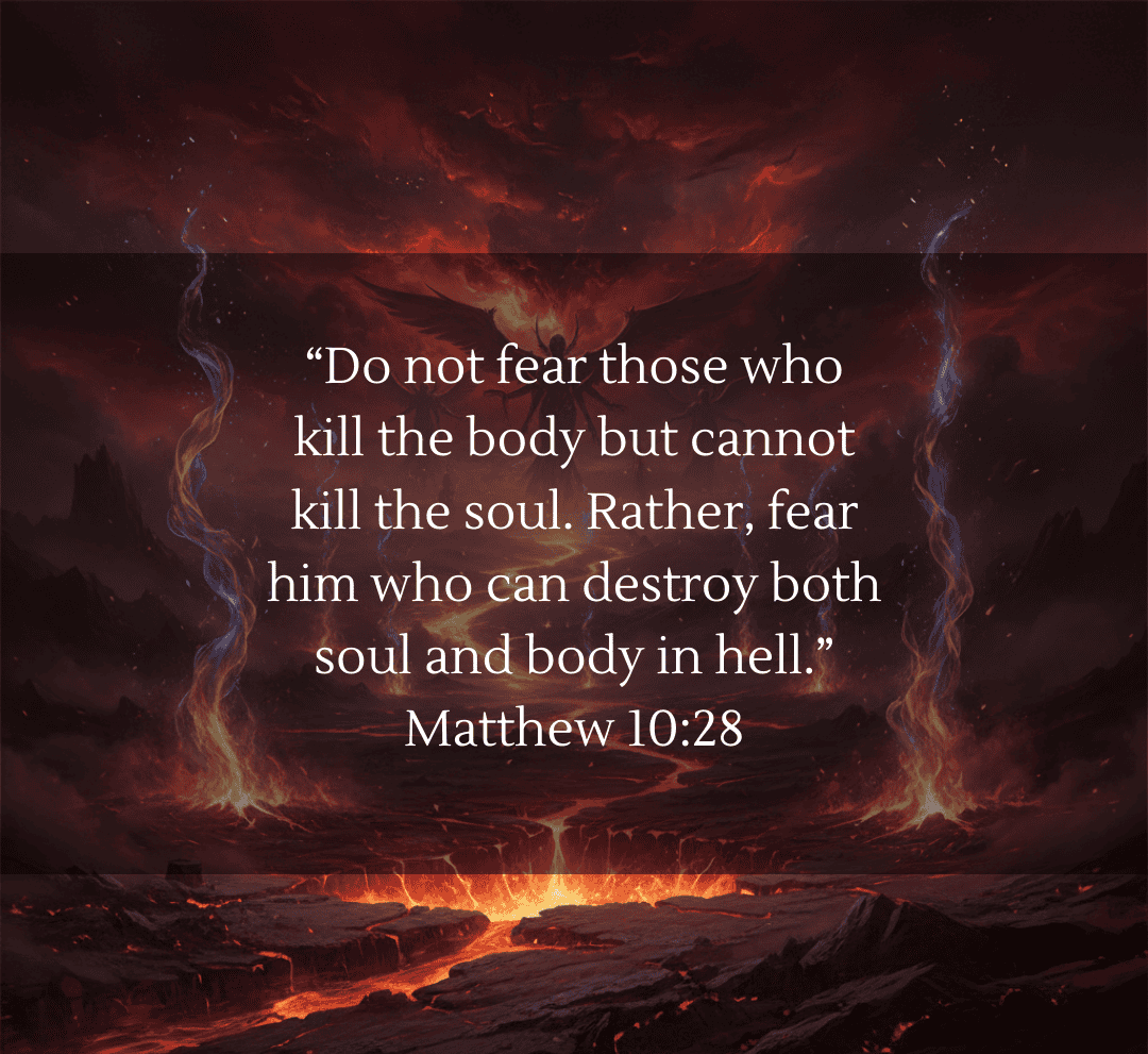 In Matthew 10:28, Jesus warns: “Do not fear those who kill the body but cannot kill the soul. Rather, fear him who can destroy both soul and body in hell.”