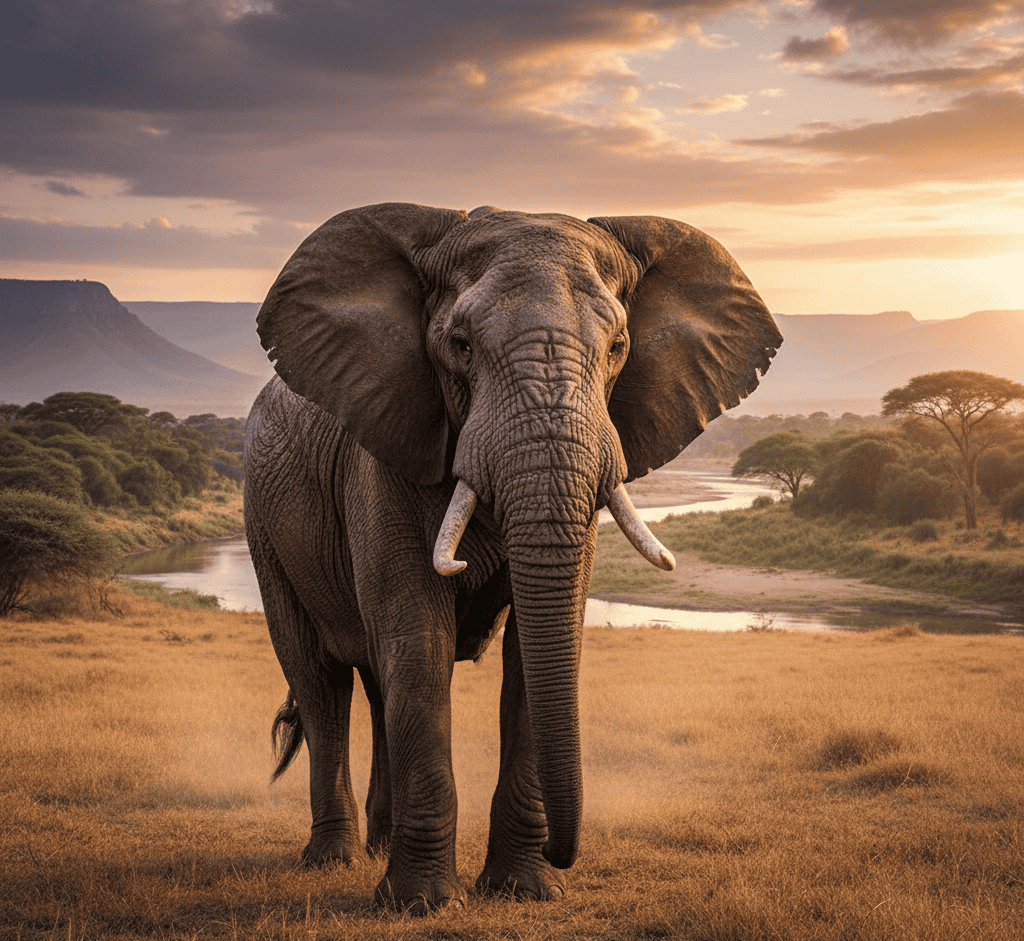 Certain details in the text, such as references to habitat and tail description, do not clearly align with an elephant.