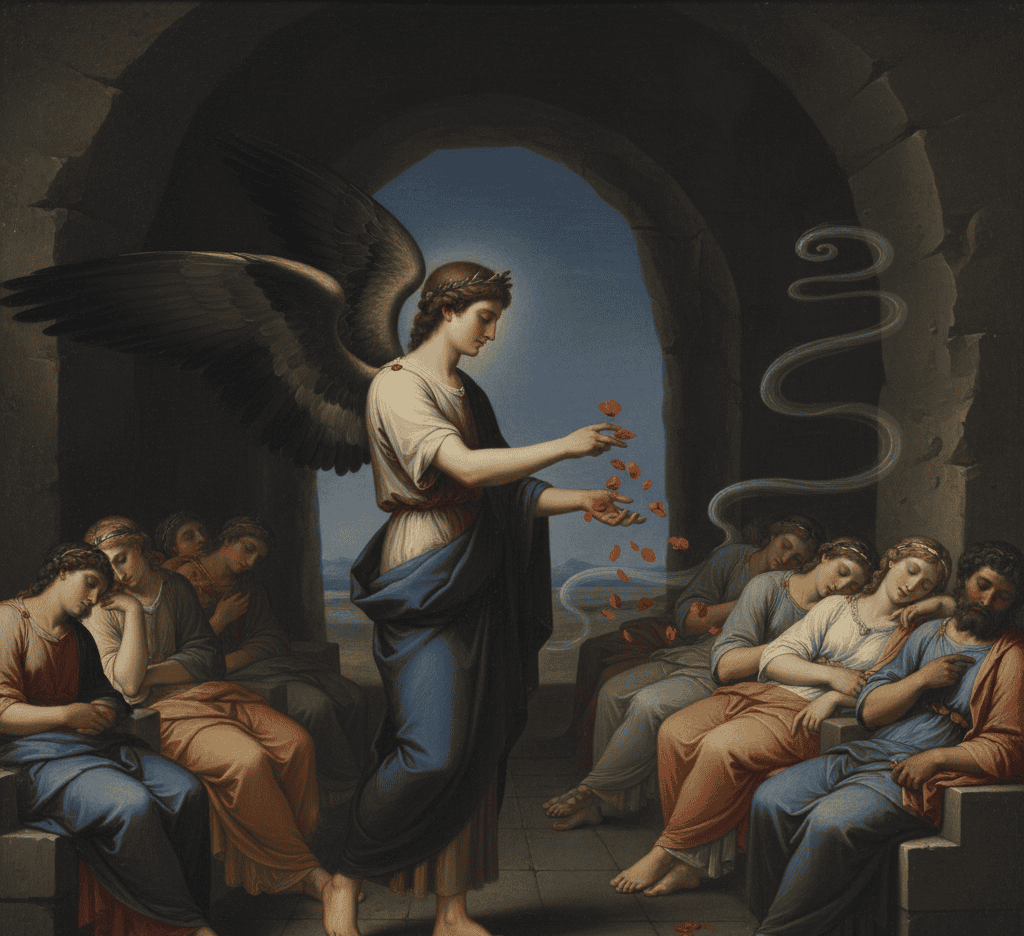 Hypnos’ twin brother, Thanatos, waited near, reminding all that slumber and death were closer than they seemed.