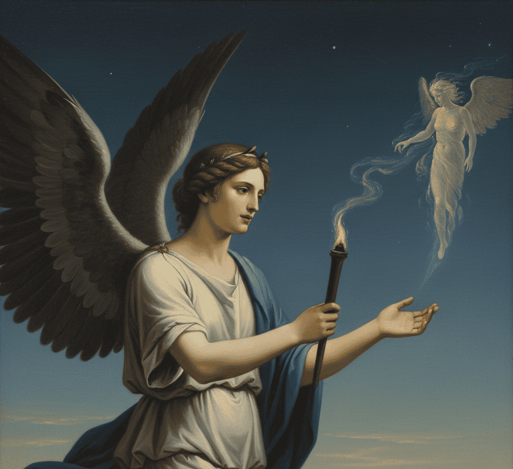 Artists portrayed him with wings and a gentle gaze, sometimes carrying a torch turned upside down. To the Greeks, Thanatos was not an enemy but a quiet companion who ended pain.