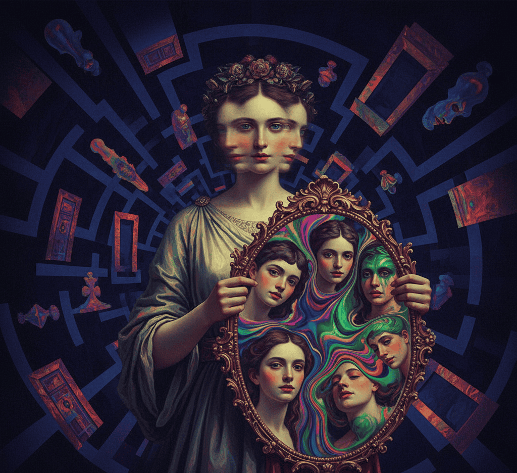 Apate was born when Nyx dreamed of secrets. She moved unseen through hearts and minds, twisting truth into illusion.