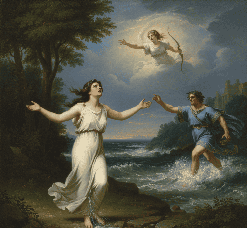 Alpheus mingled his waters with hers, ensuring that she could never fully escape him. Though not lovers in the truest sense, the myth shows how mortal lives and affections could be twisted by divine power.