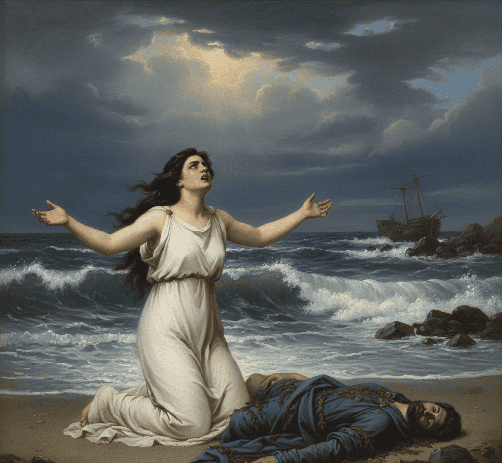 Alcyone’s grief was so profound that the gods sent her a dream revealing the truth. In despair, she threw herself into the waves.
