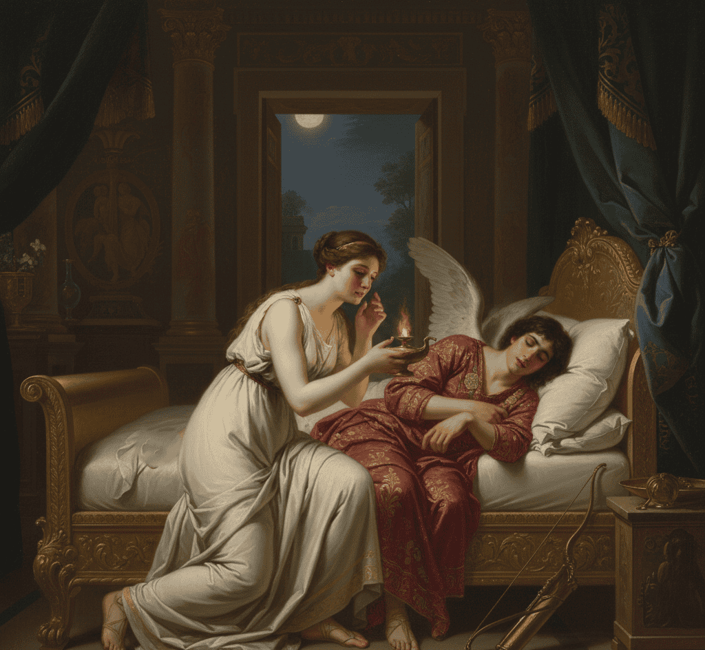 Instead, Cupid himself fell in love with her, visiting her each night in secret. Their relationship thrived under one condition: Psyche must never look at him.