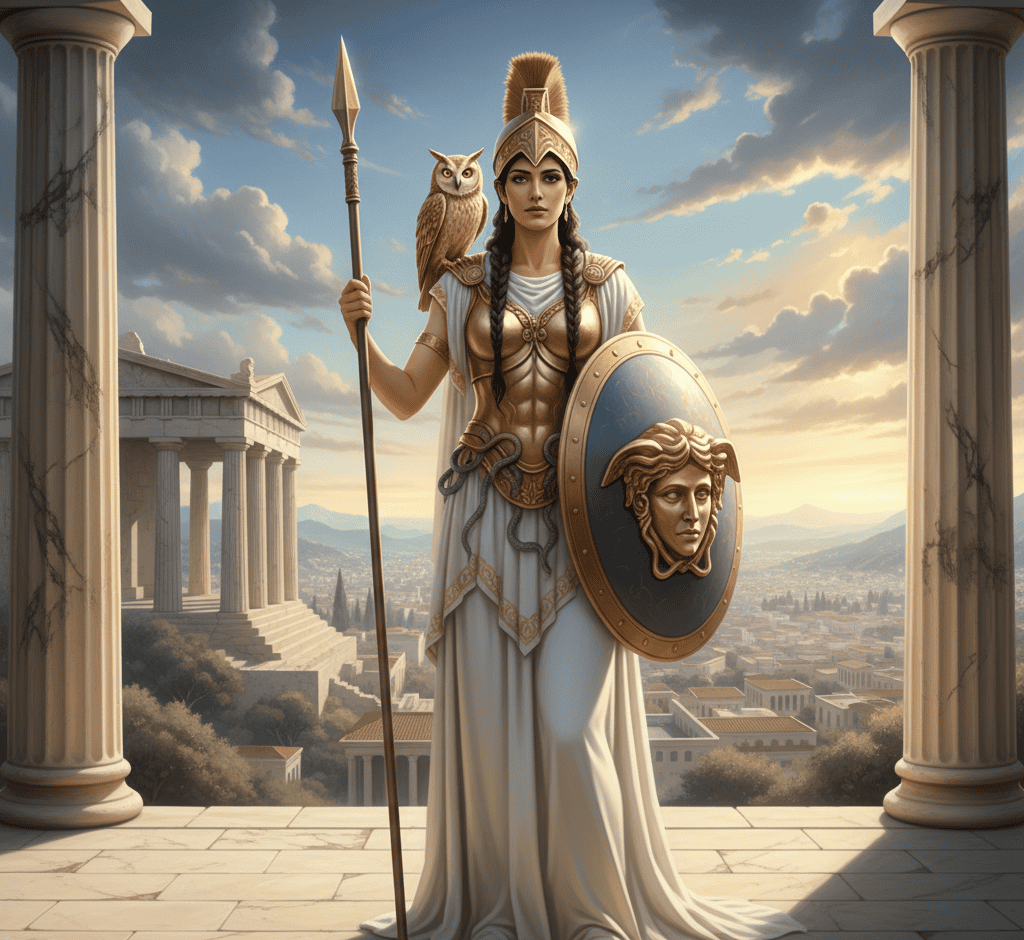 The name Athena glows with the brilliance of wisdom and strategy. She was the Greek goddess of wisdom, war, and crafts—a divine mind who valued intellect over brute force.