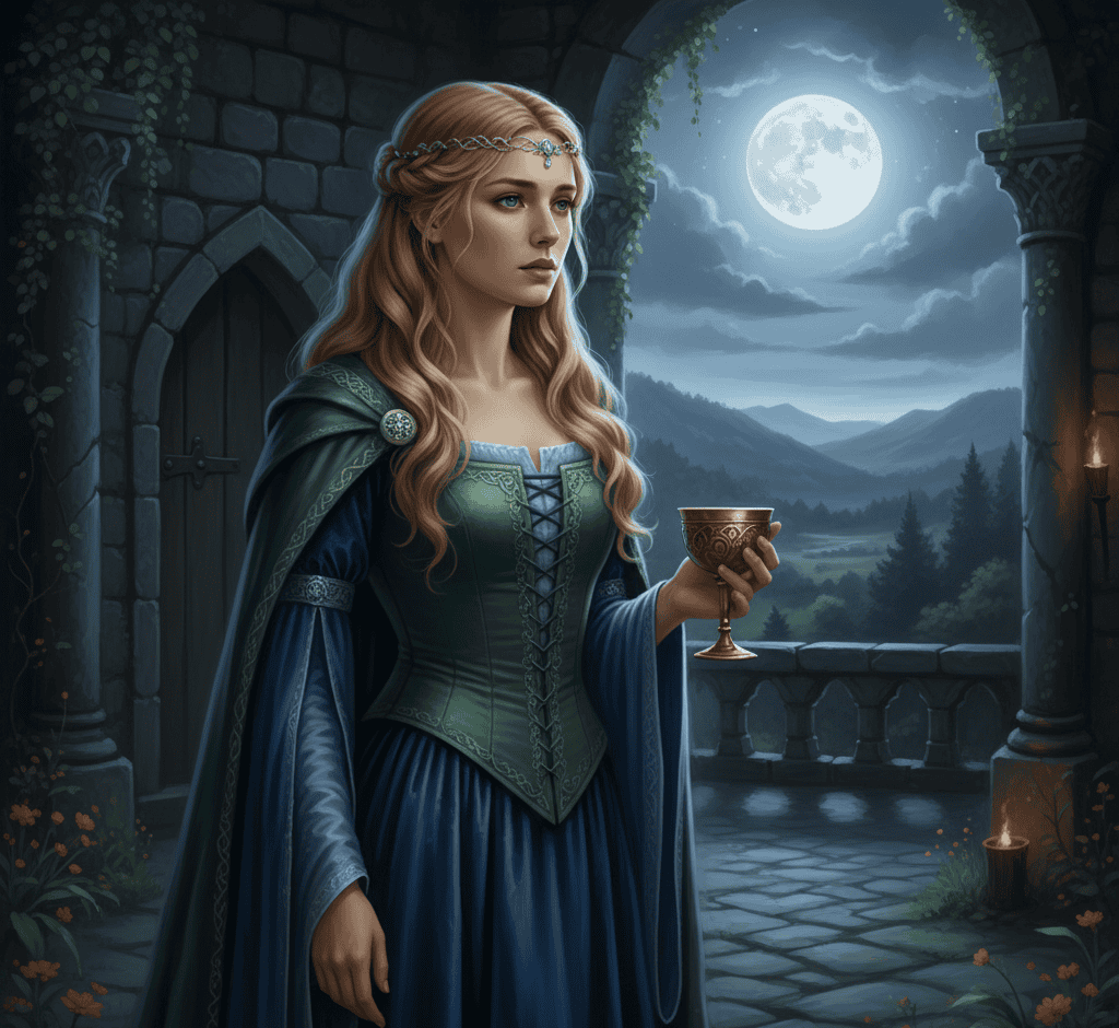 Isolde comes from a Celtic legend, most famously in the tragic love story of Tristan and Isolde. Her name means “ice ruler,” but her story burns with passion and defiance.