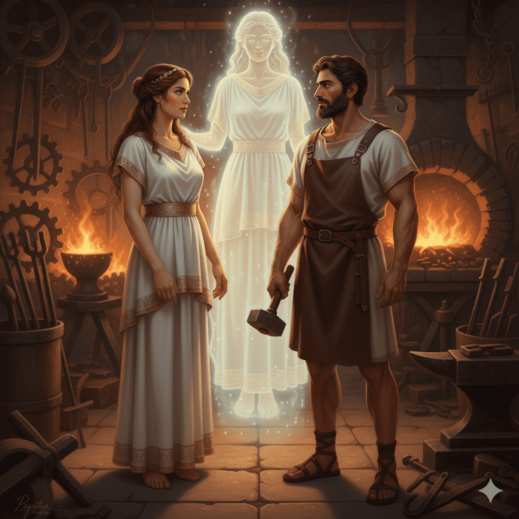 Her words persuaded Aphrodite to see Hephaestus differently. Their union may not have lasted, but it began with understanding rather than resistance.