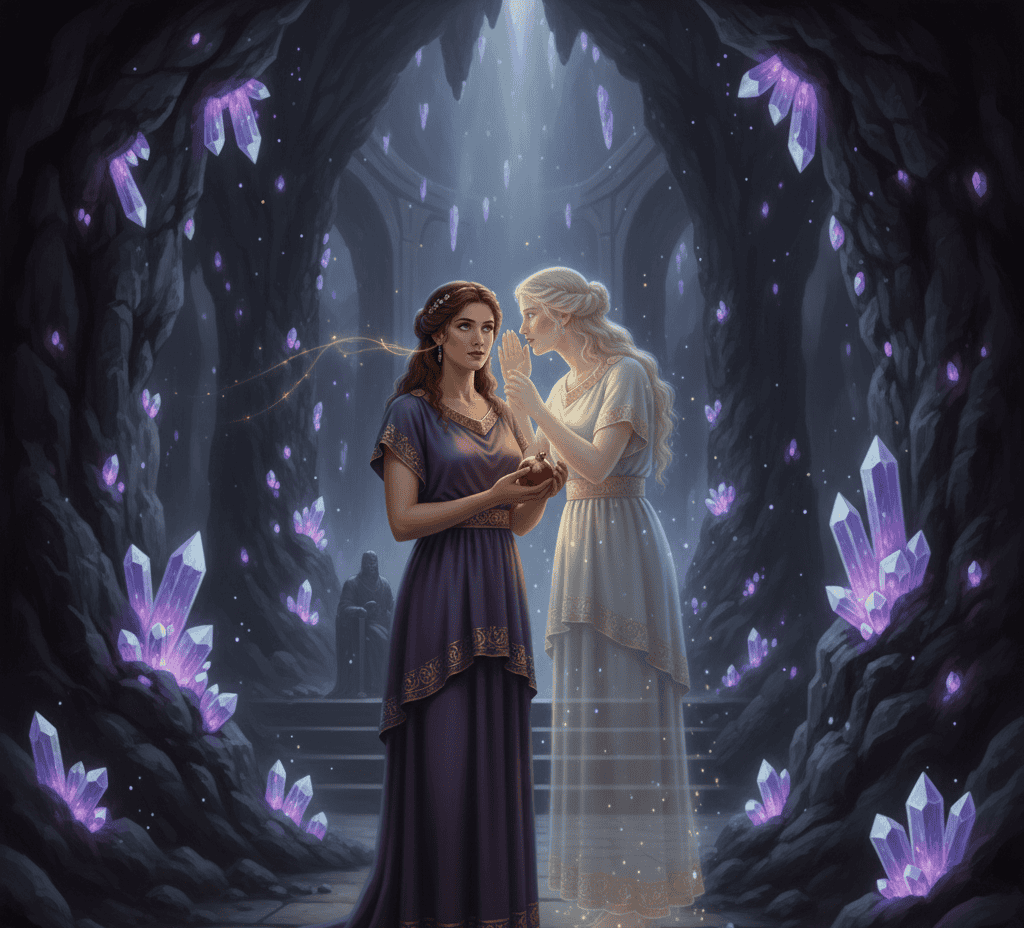 She spoke softly to Persephone, describing the beauty of the underworld, its silent fields, and the peace that awaited her there.