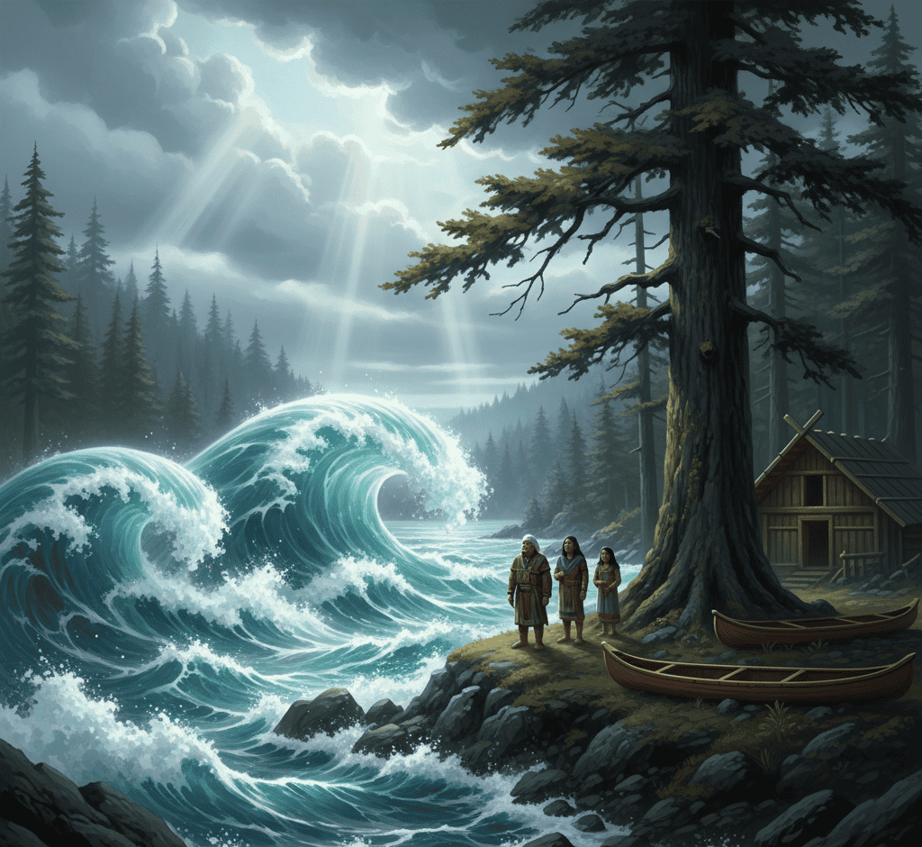 The Salish say those who live close to nature, who honor the salmon and the cedar, will be guided to safety. After the waters recede, a new harmony will begin.
