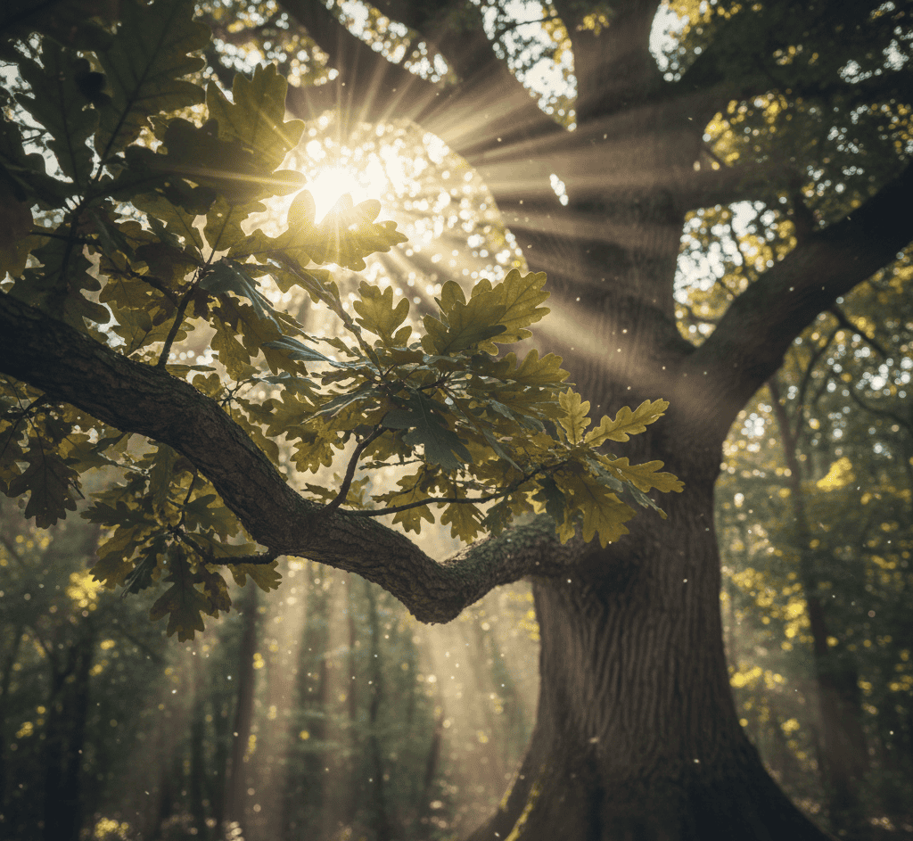 The oak tree has always been a symbol of strength and endurance. In old traditions, people believed that angels or divine beings gathered around ancient oaks.