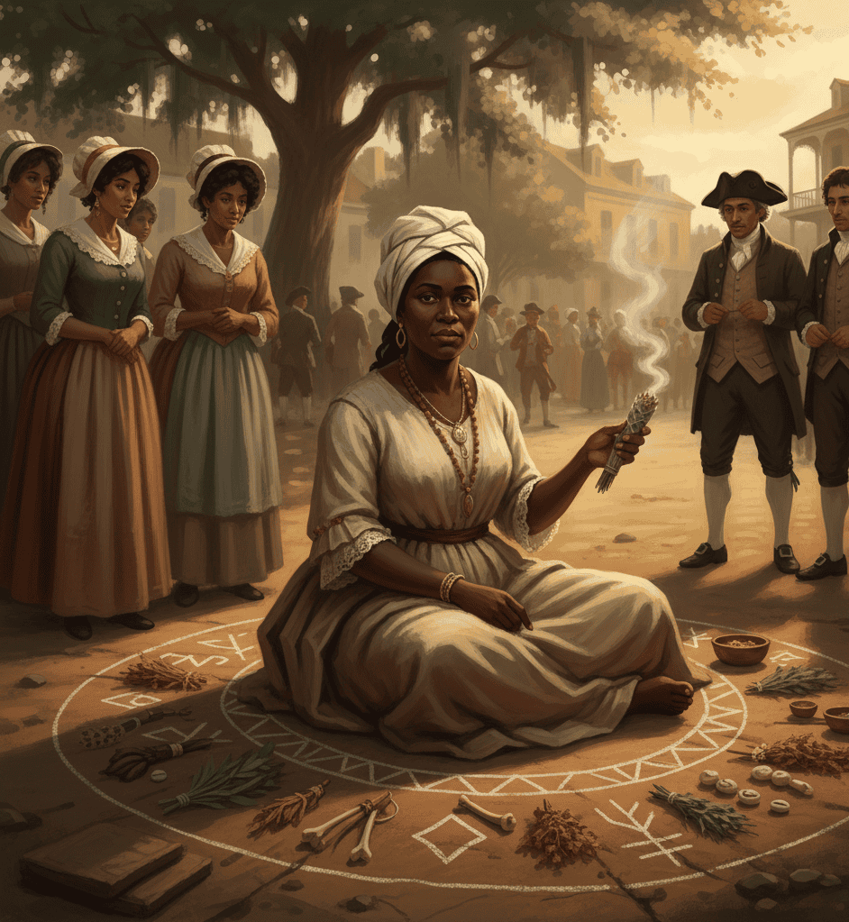 As an enslaved Caribbean woman, she likely carried spiritual traditions from Barbados that echoed through generations of Southern practitioners.