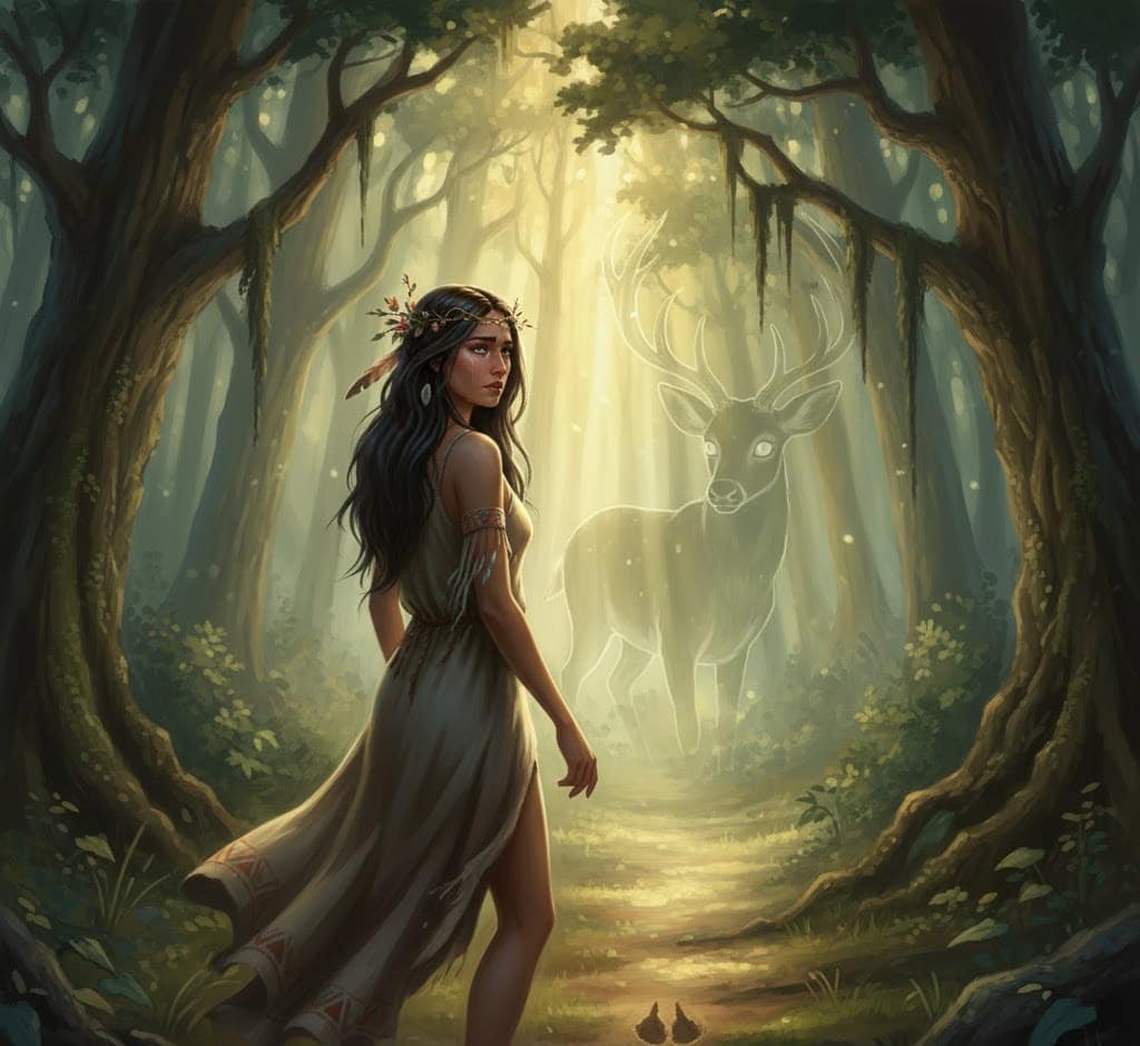 Among the Cherokee, there is a story of a woman who wandered into the woods and met a mysterious hunter. He was kind, graceful, and silent, moving through the forest like wind through leaves.