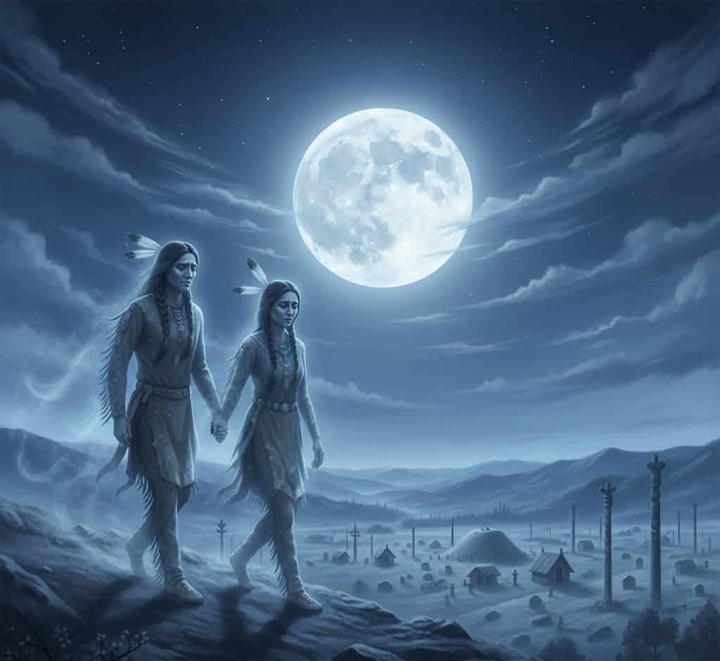 In a haunting story told among the Lakota, a woman lost her husband to war and could not bear her grief.