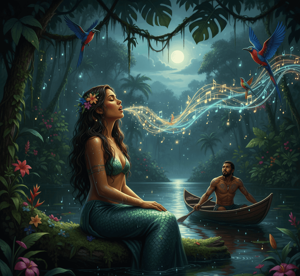 The Iara’s songs were said to blend with the sounds of birds and rushing water, making them nearly impossible to resist.