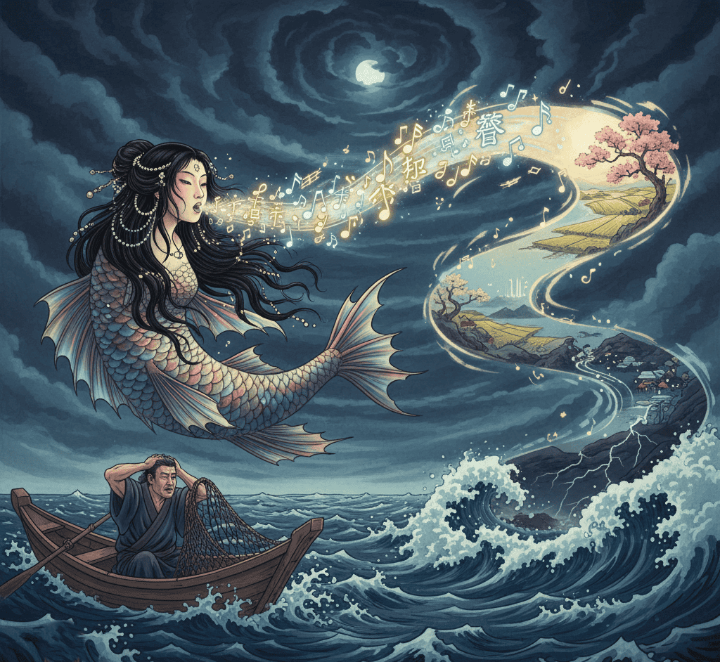 This duality made their voices both feared and sought after. Unlike the sirens of Greece, the ningyo’s song was not meant to lure but to serve as an omen of fate itself.