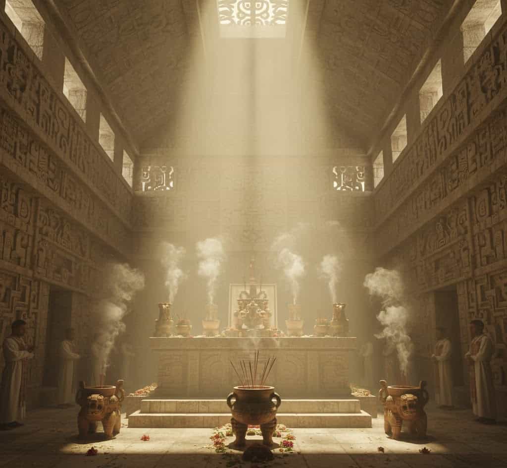 Temples filled with the scent of copal became charged spaces, vibrating with unseen energy.
