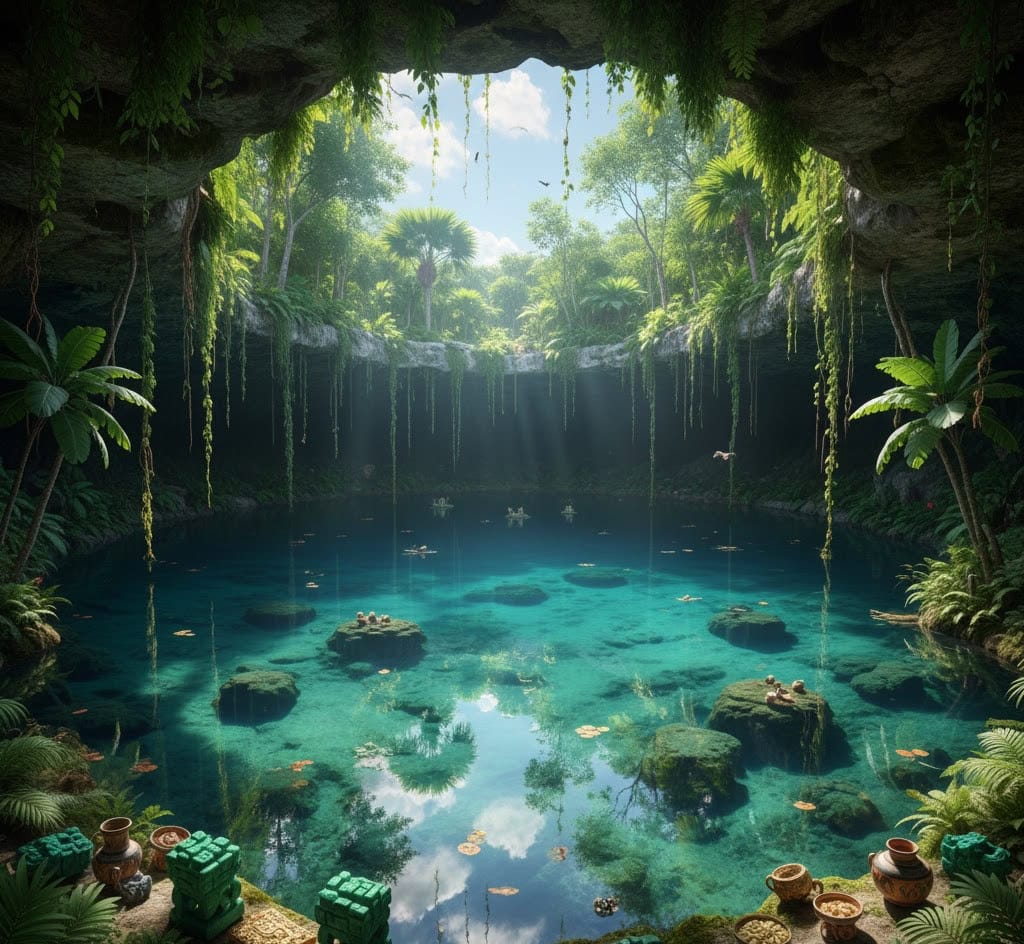 Offerings such as gold, jade, pottery, and human sacrifices were cast into their depths to honor Chaac, the rain god, and the spirits who lived below.
