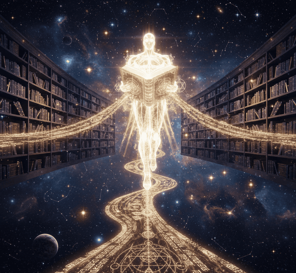 He records the deeds of humanity. He preserves the flow of time. He holds the knowledge of spiritual laws and universal truths.