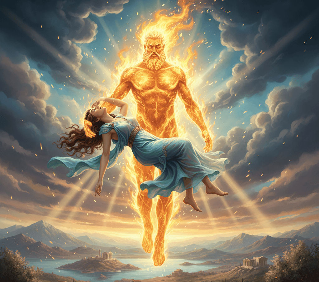 Aegina was a naiad loved by Zeus himself. To be with her, he transformed into a flame and carried her away to an island that would bear her name.